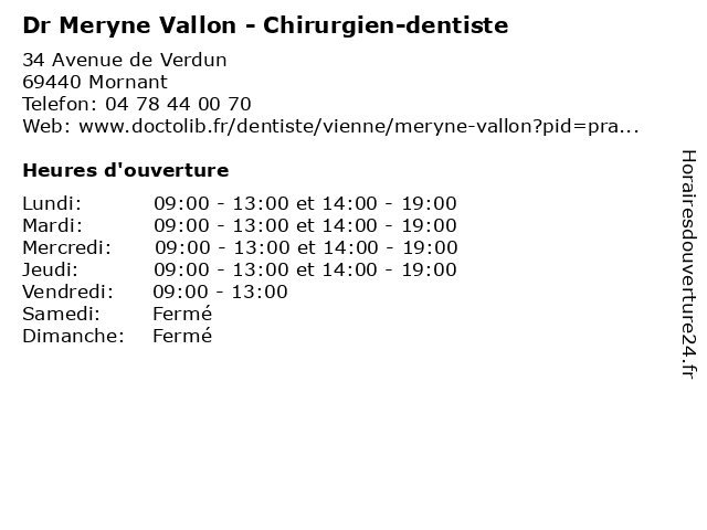 | Lundi | 09:00-13:00 et 14:00-19:00 |