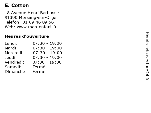 | Lundi | 07:30-19:00 |
