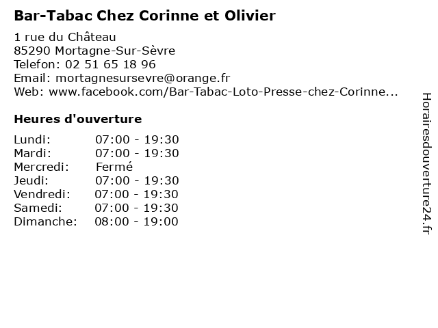 1 Le Central Bar (Distance: 0,01 km) 16 Place Hullin, 85290 Mortagne-sur-Sèvre bar, bistro, bistrot, brasserie, café, central, le, pub, restaurant, restauration, resto, tabac 3 Tabac Presse Du Centre (Distance: 4,60 km) 10 Place Charles de Gaulle, 85130 La Verrie centre, cigarettes, du, fdj, journaux, loto, presse, tabac 4 Hôtel La Verriaire (Bar) (Distance: 4,71 km) - Le Chiron, 85130 La Verrie bar, hebergement, hotel, hôtel, la, verriaire 5 Camping Le Rouge Gorge - Bar - Juillet et Août (Distance: 5,43 km) - Route de la Verrie, 85290 Saint-Laurent-sur-Sèvre 01/07, 31/08, août, au, bar, camping, caravaning, du, et, gorge, juillet, le, loisirs, rouge, tourisme, vacances 6 ETS Garnier Olivier (Distance: 6,04 km) 18 Route de Poitiers, 85290 Saint laurent sur sèvre ets, garnier, olivier |
