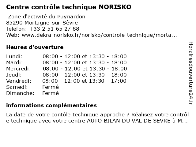 Description de l'entreprise :Préparer votre contrôle techniquePour préparer votre contrôle technique dans notre centre NORISKO de Mortagne-sur-Sèvre, vous pouvez vérifier en amont différents points comme les pneumatiques, la visibilité, le niveau d'huile ou encore l'habitacle. Pour tout savoir, consultez notre vidéo. Voir l'offre |