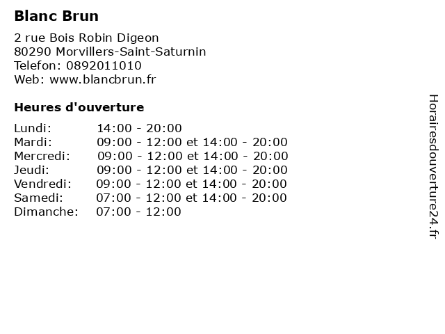 | Samedi | 07:00-12:00 et 14:00-20:00 |