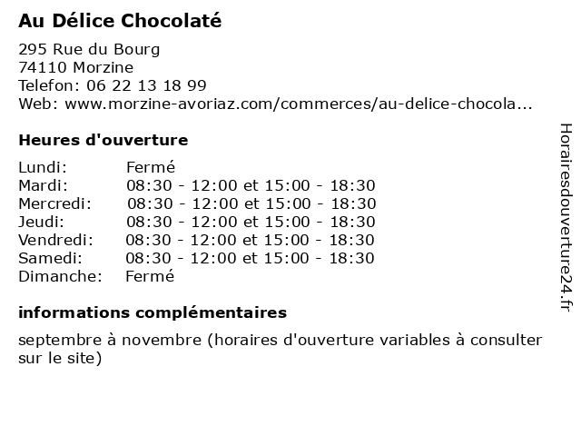 Samedi | 08:30-12:00 et 15:00-18:30 |