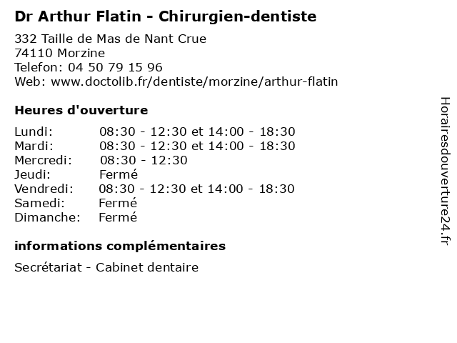 | Lundi | 08:30-12:30 et 14:00-18:30 |