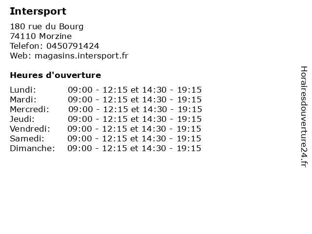 1 Intersport (Distance: 0,18 km) 614 avenue de Joux Plane, 74110 Morzine beaute, chaussures, decoration, intersport, mode enfants, mode femme, mode homme, restauration, service, sport 2 Intersport (Distance: 0,21 km) n/a Morzine, 74110 Morzine beaute, chaussures, decoration, intersport, mode enfants, mode femme, mode homme, restauration, service, sport 3 Intersport (Distance: 2,57 km) 328 rue du Pied, 74260 Les gets beaute, chaussures, decoration, intersport, mode enfants, mode femme, mode homme, restauration, service, sport 4 Intersport (Distance: 3,89 km) 344 Route du Front de Neige, 74260 Les gets accessoires, articles, chaussures, intersport, loisirs, sport, vêtements, équipement 5 Intersport (Distance: 5,26 km) n/a Les Fontaines Blanches, 74110 Avoriaz accessoires, intersport, pret a porter, running, sport, store 6 Intersport (Distance: 5,62 km) n/a Place des Ruches, 74110 Morzine beaute, chaussures, decoration, intersport, mode enfants, mode femme, mode homme, restauration, service, sport |
