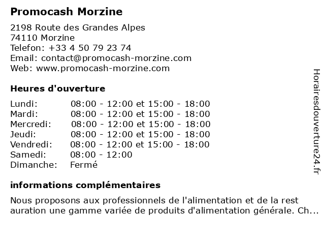 1 Promocash (Distance: 24,63 km) 27 Avenue Fontaine Couverte, 74200 Thonon-les-Bains alimentation, grossiste, promocash, viande, épicerie 2 Promocash (Distance: 31,14 km) 2 Rue des Chasseurs, 74100 Ville la Grand bouteilles, essence, location, promocash, véhicules, équipement 3 Promocash (Distance: 58,51 km) 7 Rue des Frères Lumière, 74600 Seynod aliments, fruits, grossiste, légumes, promocash, vente, vins, épicerie |