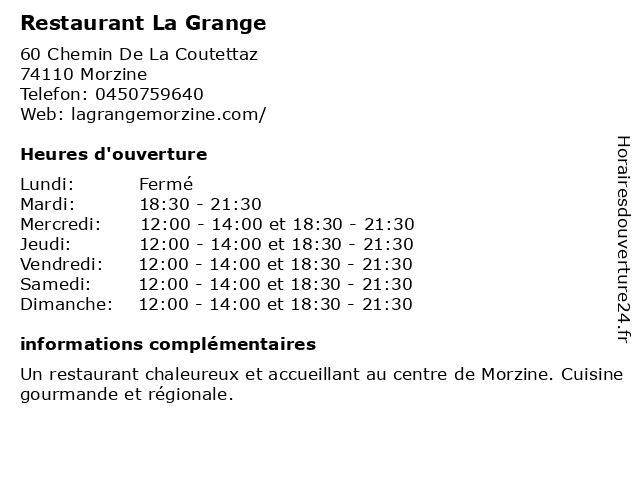 | Dimanche | 12:00-14:00 et 18:30-21:30 |