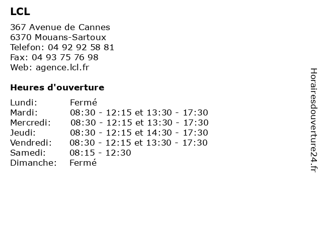 | Mardi | 08:30-12:15 et 13:30-17:30 |