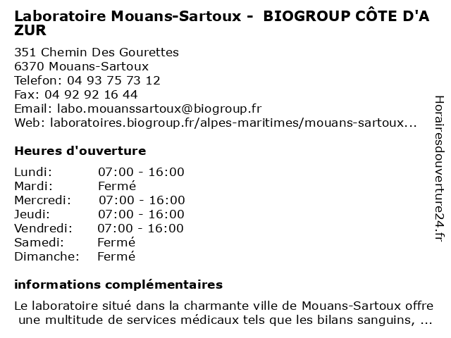 Termes de recherche pour Laboratoire Mouans-Sartoux - BIOGROUP CÔTE D'AZUR:laboratoire, cote, d'azur, mouans, sartoux, biogroup, dépistages, laboratoire de diagnostic |