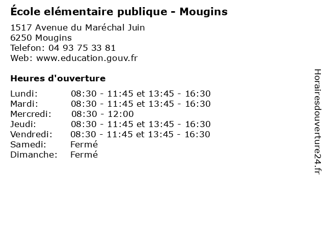 | Mardi | 08:30-11:45 et 13:45-16:30 |