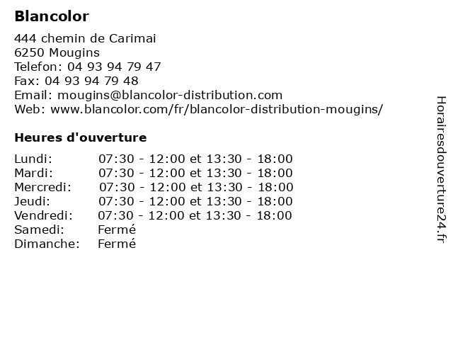 | Lundi | 07:30-12:00 et 13:30-18:00 |