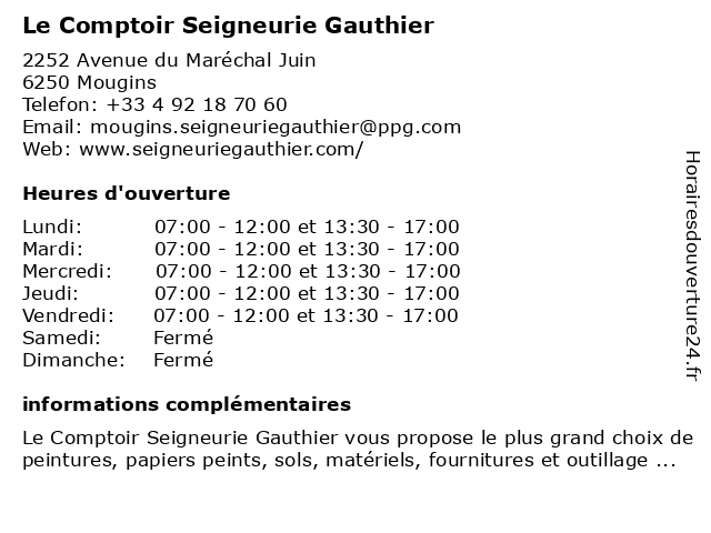 Lundi | 07:00-12:00 et 13:30-17:00 |