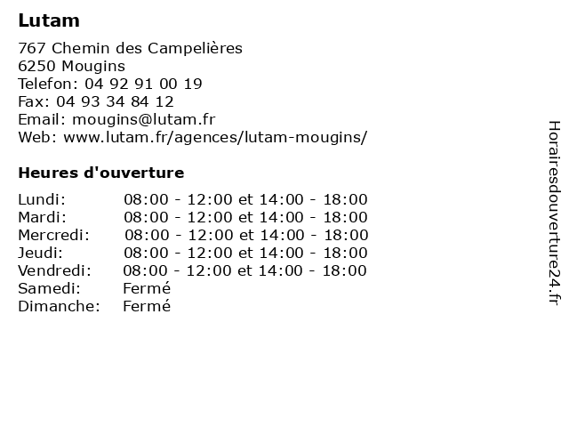 | Lundi | 08:00-12:00 et 14:00-18:00 |