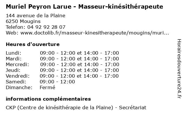 | Lundi | 09:00-12:00 et 14:00-17:00 |