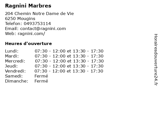 | Lundi | 07:30-12:00 et 13:30-17:30 |
