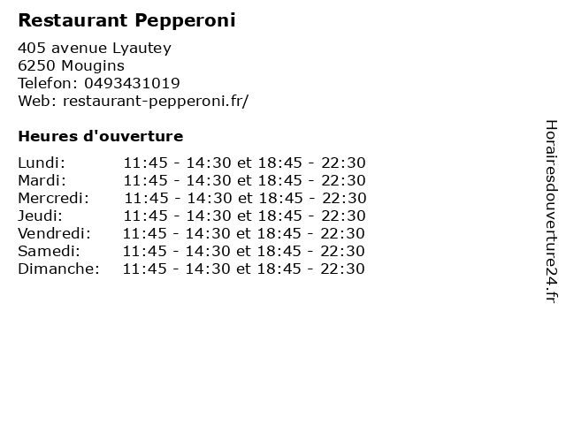 | Mardi | 11:45-14:30 et 18:45-22:30 |