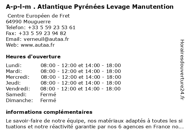Termes de recherche pour A-p-l-m . Atlantique Pyrénées Levage Manutention:pyrenees, atlantique, levage, manutention |