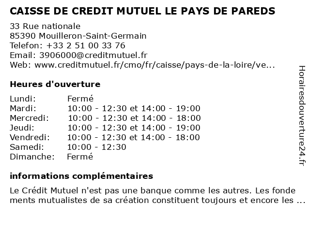 Termes de recherche pour CAISSE DE CREDIT MUTUEL LE PAYS DE PAREDS:le, de, crédit, mutuel, caisse, pays, pareds |