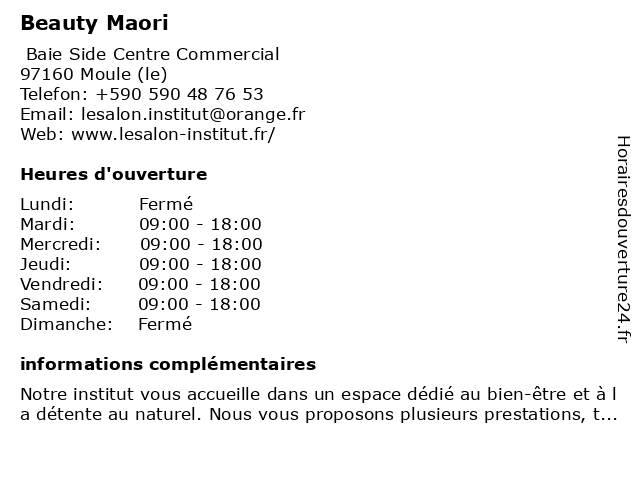 1 Beauty Success (Distance: 17,51 km) - Centre commercial Milenis, 97139 Les Abymes beauty, beauté, institut, maquillage, soins, success, épilation 2 Lollipink-Nail & Beauty Bar (Distance: 21,47 km) 29 Résidence Presqu'ile,La Marina, 97110 Pointre-à-Pitre bar, beauty, corps, institut beauté, lollipink, manucure, nail, soins, vernis, épilation 3 Beauty Success (Distance: 25,26 km) 1 boulevard Destrellan, 97122 Baie Mahault beauty, cosmétiques, parfum, produits cosmétiques, soins du corps, success |