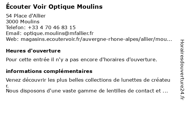 | Appeler Écouter Voir Optique Moulins | |