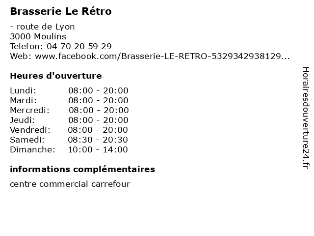 | Lundi | 08:00-20:00 |