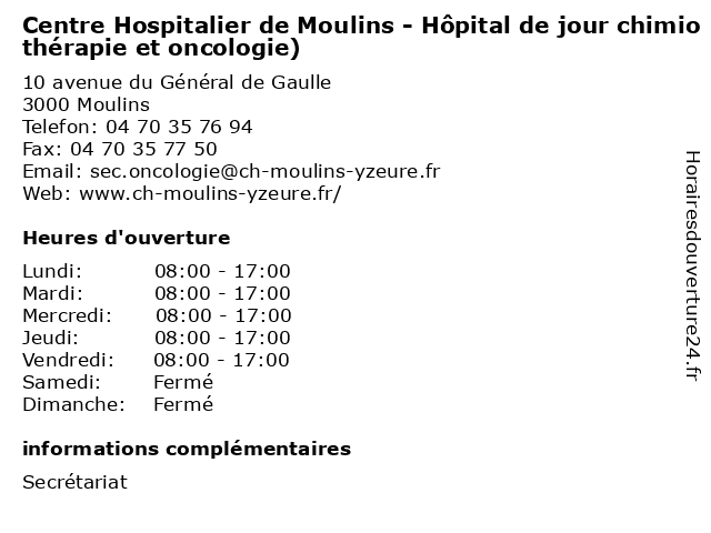 Termes de recherche pour Centre Hospitalier de Moulins - Hôpital de jour chimiothérapie et oncologie):et, de, moulins, centre, hopital, jour, med, medecine, traitement, hospitalier, oncologie, docteur, médecin, consultation, chimiothérapie |
