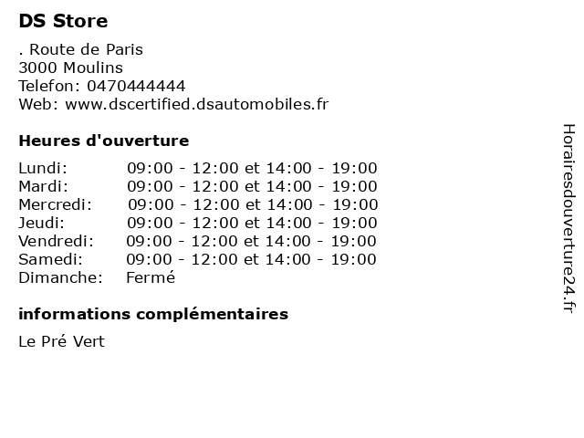 | Samedi | 09:00-12:00 et 14:00-19:00 |