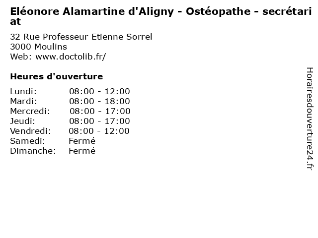 Termes de recherche pour Eléonore Alamartine d'Aligny - Ostéopathe - secrétariat:medecine, eléonore, secretariat, docteur, médecin, ostéopathe, alamartine, d'aligny |