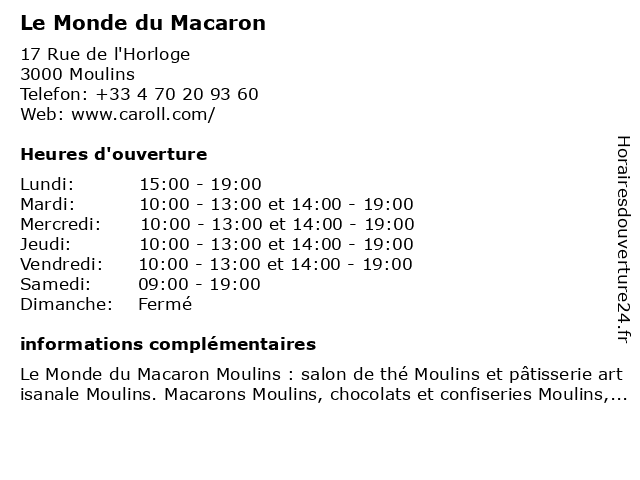 | Mercredi | 10:00-13:00 et 14:00-19:00 |