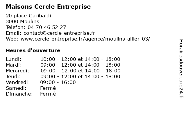 | Mercredi | 09:00-12:00 et 14:00-18:00 |