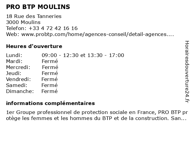 | Lundi | 09:00-12:30 et 13:30-17:00 |