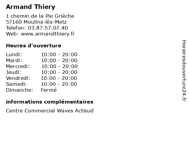 1 Armand Thiery Femme (Distance: 2,76 km) . Rue des Ponts, 54000 Nancy armand, beaute, cafe, chaussures, enfants, femme, mode femmes, mode hommes, restaurant, sport, thiery 2 Armand Thiery Homme (Distance: 2,76 km) . Rue des Ponts, 54000 Nancy armand, beaute, cafe, chaussures, enfants, homme, mode femmes, mode hommes, restaurant, sport, thiery 3 Armand Thiery Homme (Distance: 6,57 km) 7 En Chaplerue, 57000 Metz accessoires, armand, homme, mode, thiery, vêtements 4 Armand Thiery Femme (Distance: 6,63 km) 34 Rue des Clercs, 57000 Metz accessoires, armand, femme, mode, thiery, vêtements 6 Armand Thiery Homme (Distance: 12,44 km) . Voie Romaine, 57280 Semécourt accessoires, armand, homme, mode, thiery, vêtements |