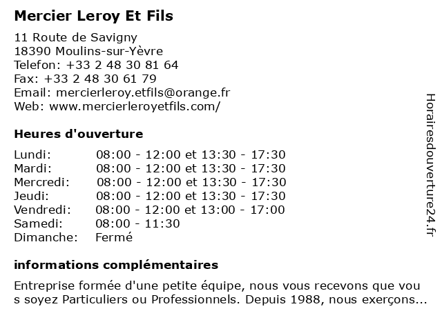 | Mercredi | 08:00-12:00 et 13:30-17:30 |