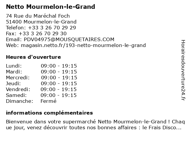 2 Netto Saint-Brice-Courcelles (Distance: 29,92 km) 3 Rue de Bernex, 51370 Saint-Brice-Courcelles brice, courcelles, netto, saint 4 Netto (Distance: 55,63 km) 4 rue du bois de l'Isle, 73460 Frontenex achats de produits alimentaires, des prix bas, grands supermarchés, hard discount, netto, supermarchés |
