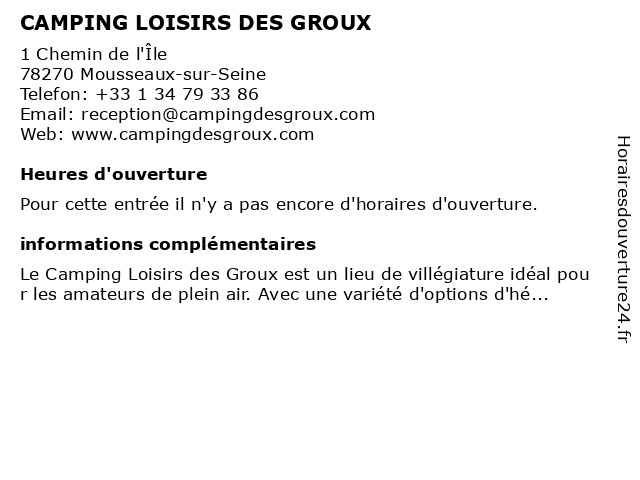 | Appeler CAMPING LOISIRS DES GROUX | |
