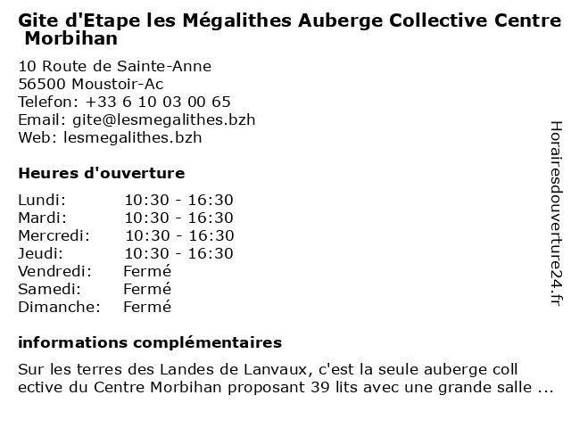 | Lundi | 10:30-16:30 |