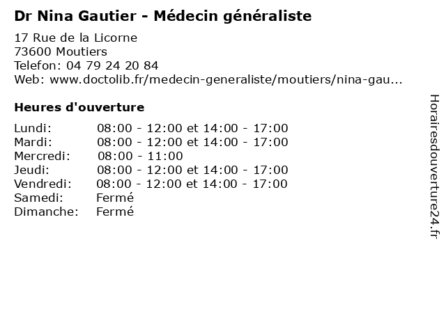 | Lundi | 08:00-12:00 et 14:00-17:00 |