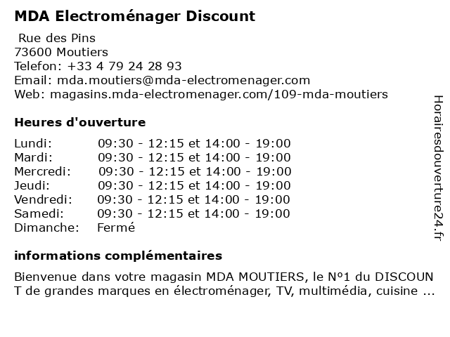 2 MDA Electroménager Discount (Distance: 43,40 km) Avenue de la Breisse, 73190 Challes-les-Eaux discount, electroménager, mda 3 MDA Electroménager Discount (Distance: 51,14 km) 7 Rue du Pré Pagnon, 73000 Chambery discount, electroménager, mda 4 MDA Electroménager Discount (Distance: 54,93 km) 907 Avenue Ambroise Croizat, 38920 Crolles discount, electroménager, mda 5 Carrefour Montagne (Distance: 21,35 km) - Rue Piétonne Caron, 73440 Val Thorens alimentation, carrefour, magasin discount, market, montagne, supermarché 6 Carrefour Montagne (Distance: 21,59 km) - Immeuble le Portillo, 73440 St Martin De Belleville alimentation, carrefour, magasin discount, market, montagne, supermarché |