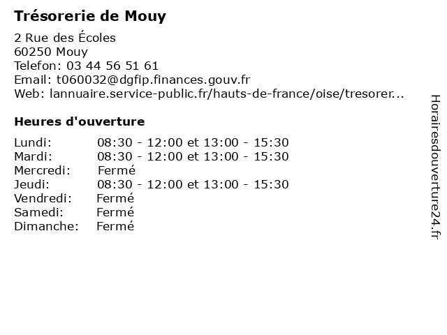 Termes de recherche pour Trésorerie de Mouy:de, administration, service, finances, trésor, impôts, public, trésorerie, mouy |