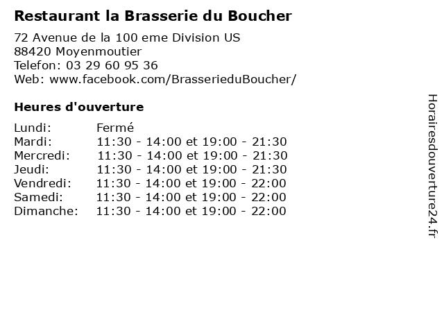 | Dimanche | 11:30-14:00 et 19:00-22:00 |