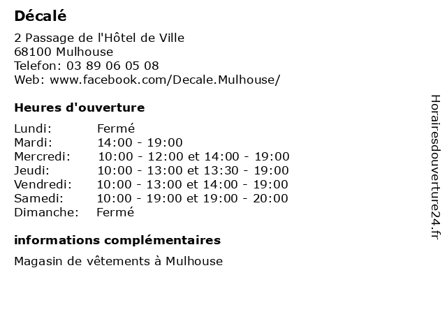 | Jeudi | 10:00-13:00 et 13:30-19:00 |