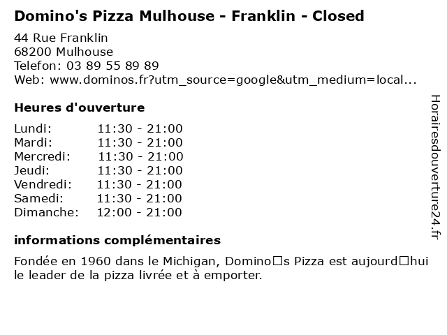 Termes de recherche pour Domino's Pizza Mulhouse - Franklin - Closed:pizza, domino's, mulhouse, franklin, closed |