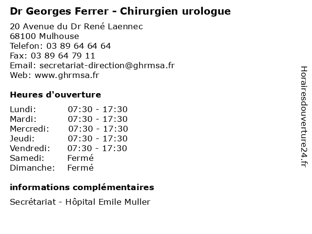 1 Dr Georges Ferrer - Chirurgien urologue (Distance: 13,36 km) 23 Rue 3ème Zouave, 68130 Altkirch chirurgien, consultation, docteur, dr, ferrer, georges, med, médecin, médecine, traitement, urologue 2 Dr.Georges Newinger - Pneumologie et pathologies respiratoires (Consultations publiques) (Distance: 0,00 km) 20 Avenue du Dr René Laennec, 68070 Mulhouse consultations, docteur, dr.georges, et, medecins, newinger, pathologies, pneumologie, publiques, respiratoires, sante 3 Dr Sofien Kchaou - Chirurgien urologue (Distance: 0,00 km) 20 Avenue du Dr René Laennec, 68100 Mulhouse chirurgie, chirurgien, dr, general, kchaou, sofien, soins, urologue 4 Dr Jean-Pierre Ansieau - Chirurgien urologue (Distance: 0,00 km) 20 Avenue du Dr René Laennec, 68100 Mulhouse ansieau, chirurgien, consultation, docteur, dr, jean, med, medecine, medical, médecin, pierre, traitement, urologue 5 Dr Roger Mathias - Chirurgien urologue (Distance: 0,00 km) 20 Avenue du Dr René Laennec, 68100 Mulhouse chirurgien, consultation, docteur, dr, mathias, med, medecine, medical, médecin, roger, traitement, urologue 6 Dr Sofien Kchaou - Chirurgien urologue (Distance: 0,00 km) 20 Avenue du Dr René Laennec, 68100 Mulhouse bureau, chirurgien, chru, consultation, dr, kchaou, maladie, med, médecin, médecine, pratique, sofien, strasburg, thérapie, traitement, urologie, urologue |