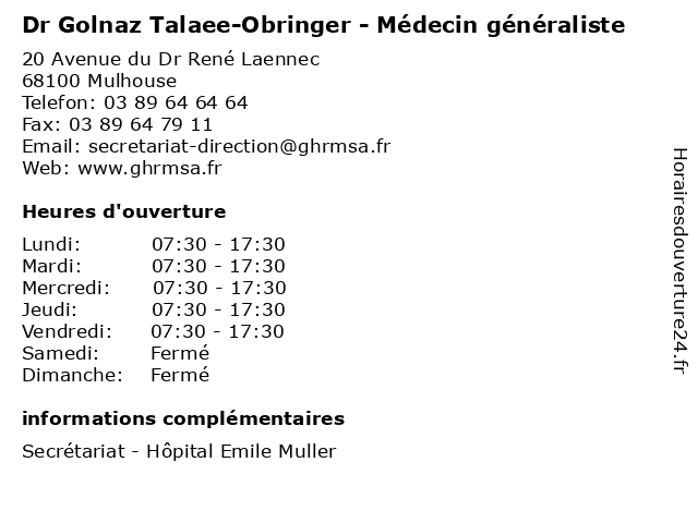 Termes de recherche pour Dr Golnaz Talaee-Obringer - Médecin généraliste:med, traitement, généraliste, docteur, médecin, consultation, dr, golnaz, obringer, talaee |