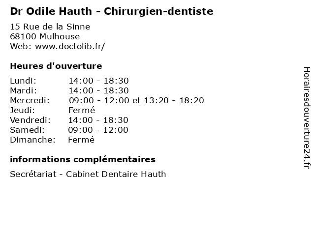 Termes de recherche pour Dr Odile Hauth - Chirurgien-dentiste:med, medecine, odile, traitement, docteur, médecin, consultation, hauth, dr, dentiste, chirurgien |