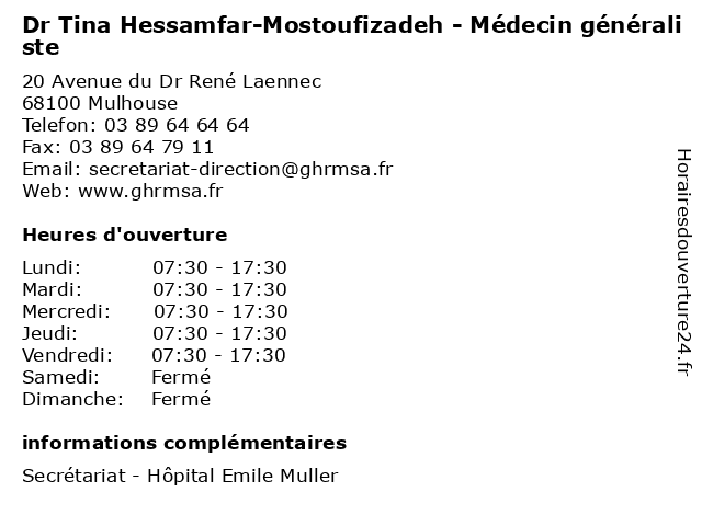 Termes de recherche pour Dr Tina Hessamfar-Mostoufizadeh - Médecin généraliste:med, traitement, généraliste, docteur, médecin, consultation, dr, tina, hessamfar, mostoufizadeh |