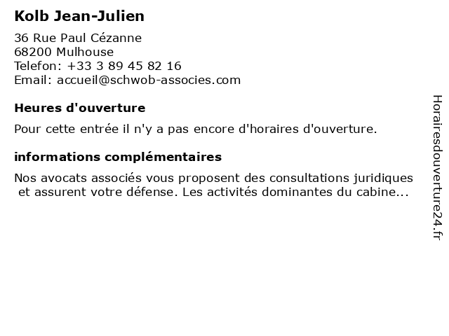 1 Maître Jean-Julien Kolb - Avocat (Distance: 0,01 km) 36 Rue Paul Cézanne, 68200 Mulhouse avocat, jean, julien, justice, kolb, lois, maitre, maître 2 Prod'Homme Julien Klaus (Distance: 2,81 km) Tentation Vegetale, 68460 Lutterbach homme, julien, klaus, prod, restaurants 3 Maître Julien Demael - Avocat (Distance: 2,93 km) 28 C Rue François Spoerry, 68100 Mulhouse avocat, avocats, cabinet, conseils, contentieux, demael, julien, juridique, justice, litiges, maître, services 4 Beauclair Adrien Julien Sebastien (Distance: 3,75 km) 35 Rue Des Boulangers, 68100 Mulhouse adrien, beauclair, julien, restaurants, sebastien 5 Julien d'Orcel (Distance: 3,82 km) 20 Rue du Werkhof, 68100 Mulhouse bagues, boucles d'oreilles, bracelets, d'orcel, julien, montres, pendentifs 6 Banque Kolb (Distance: 4,07 km) 6 avenue du Maréchal Foch, 68100 Mulhouse agence, bancaire, banque, kolb |