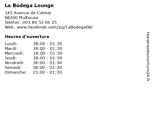 | Samedi | 18:00-01:30 |