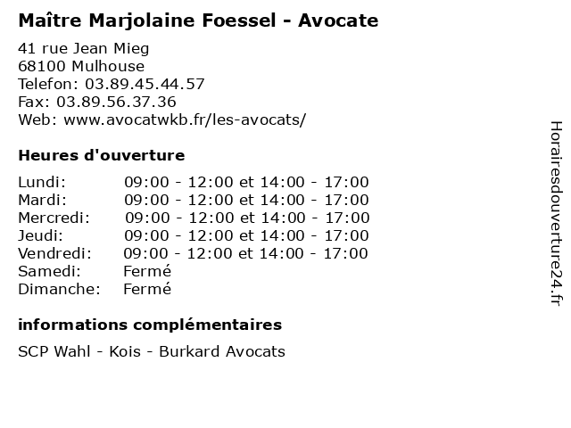 | Mardi | 09:00-12:00 et 14:00-17:00 |