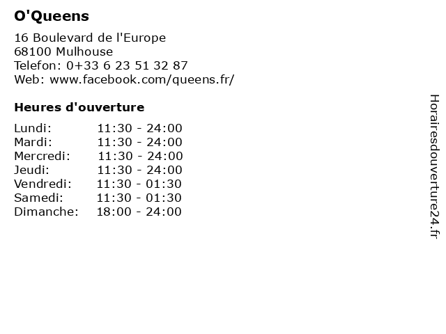 | Samedi | 11:30-01:30 |