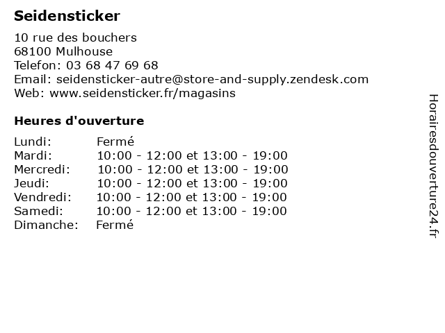 | Samedi | 10:00-12:00 et 13:00-19:00 |